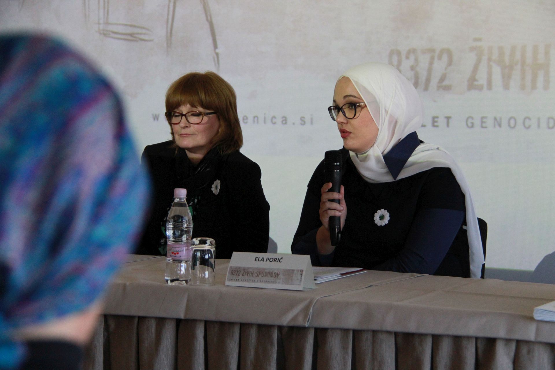 Almasa Salihović in Hasan Hasanović, ki sta imela v času tragedije osem oziroma 21 let, sta izpovedala pretresljivi osebni zgodbi. Pahor jima je za hrabro dejanje in pogum, da spregovorita o grozotah in tako s svojimi pričanji ohranjata spomin na grozodejstva, ki naj se nikoli več ne ponovijo, izrekel globoko spoštovanje.