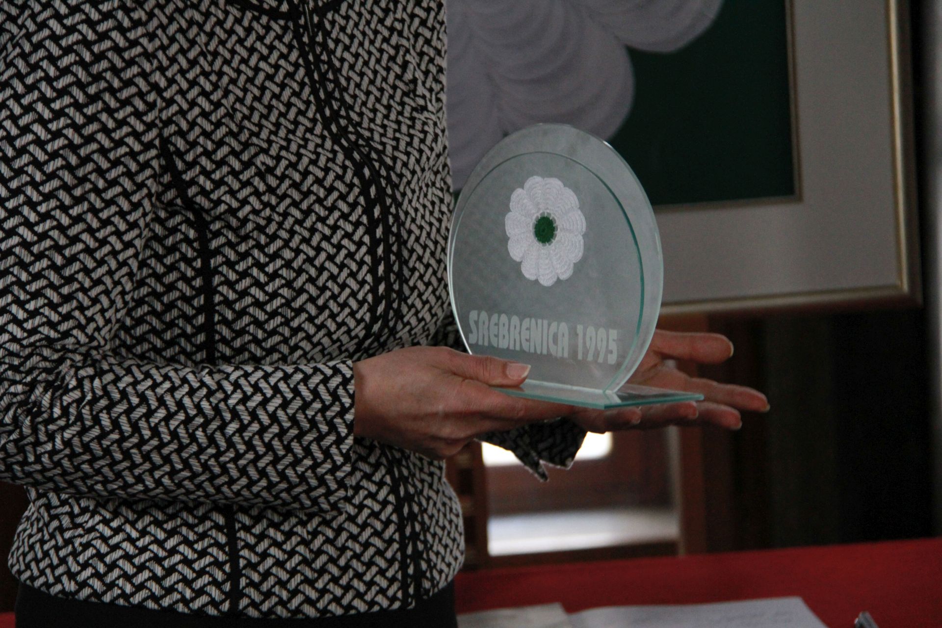 Azemina Ahmedbegović iz nevladnega društva Gračaniško keranje, v katerem je združeno okoli 200 žensk, mater in sester žrtev pokola, ki kvačkajo simbol genocida v Srebrenici – beli cvet z enajstimi belimi cvetnimi listi in zelenim krožcem – je poudarila, da ta cvet ni le simbol Srebrenice, temveč tudi drugih krajev v BiH, ki jih je obeležil genocid. Poudarila je, da gre za ročno izdelane priponke v obliki cveta, s katerimi matere in sestre ublažijo svojo žalost. Ko vidijo, da jih kdo nosi, pa vedo, da niso same. Cvet je izpostavila tudi kot simbol miru, ljubezni in želje, da se kaj takega nikoli več ne ponovi. Po njenih besedah je ena od članic društva v mesecu dni naredila doslej največji cvet, ki bo kot potujoči cvet Srebrenice med potjo po Sloveniji do oktobra v različnih ustanovah vabil, da v knjigo zabeležijo sporočilo preživelim po vojni v Bosni in Hercegovini.